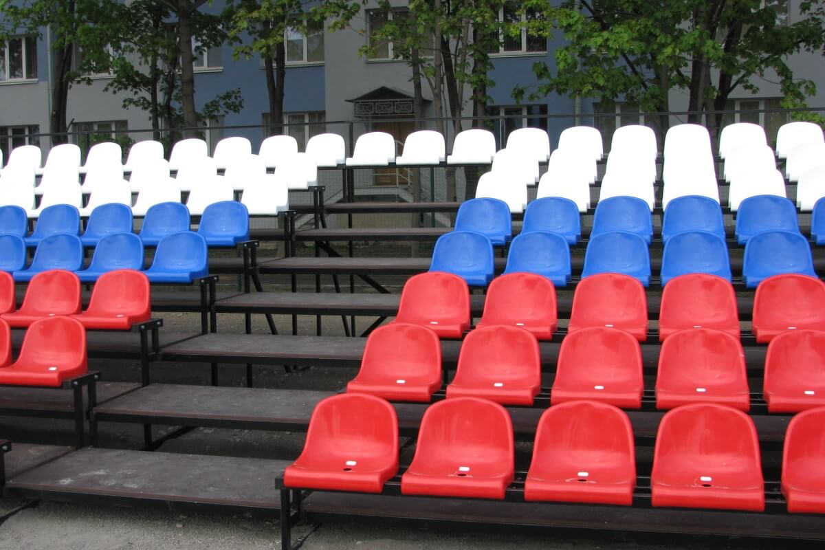 Главная страницаВ онлайн-магазине «Уличный турник» Вы можете купить трибуны для зрителей любого типа и сложности. Мы выполняем трибуны из металла как с пластмассовыми сиденьями, так и с лавками. Сидения из пластика оборудованы дренажным отверстием, что позволяет эксплуатировать зрительские трибуны на открытом пространстве. Дополнительно, трибуна для стадиона может быть доукомплектована навесом, а также необходимым подъемом. Расцветка, габариты и комплектация конструкции определяется заказчиком.