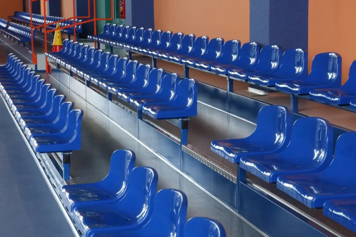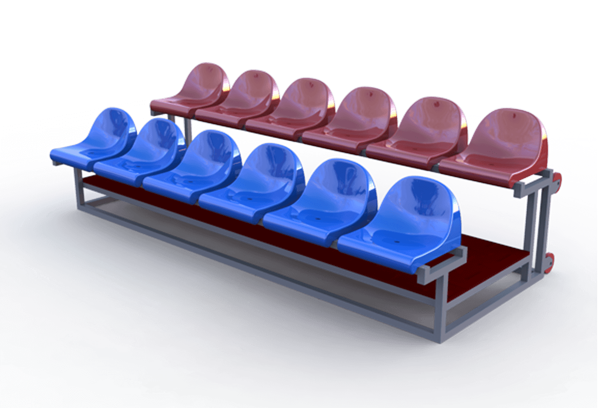 Сборно-разборная трибуна – это конструкция из металла, детали которой собираются между собой при помощи болтового соединения. Такие конструкции считаются самыми универсальными и удобными в использовании. Зрительская трибуна такого типа состоит из неограниченного количества рядов и проходов, быть приспособлена под любую площадь. В виде напольного слоя лестничного прохода и прохода между рядами применяются такие материалы как: листы металла или влагостойкая ламинированная фанера. Металлический каркас может быть окрашен в любой цвет по желанию заказчика.