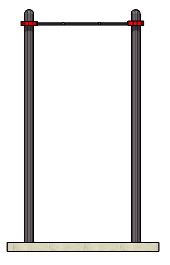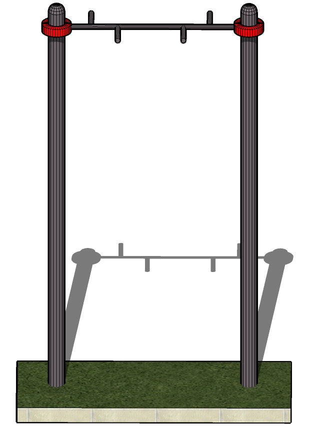 Опорные столбы высотой 2600 мм в количестве 2 единиц, перекладина, расположенная на высоте 2500 мм от поверхности основания. Перекладина крепится к опорным столбам при помощи хомутов. Длина комплекса не более 1400 мм. Перекладина турника «Молоток» для неклассического подтягивания.